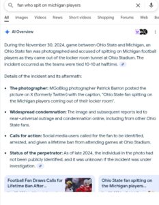 So, yesterday I asked AI whatever happened to the fan accused of spitting on Michigan players exiting the tunnel at OSU. Here’s its response: